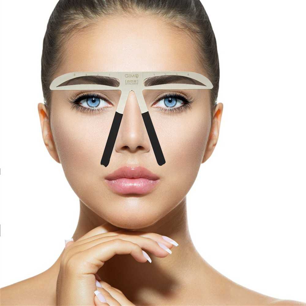 - Линейкой или трафаретом. Этот способ математически точен и помогает сделать совершенно одинаковые бровки с обеих сторон. Недостаток – линейки не учитывают особенности лица;