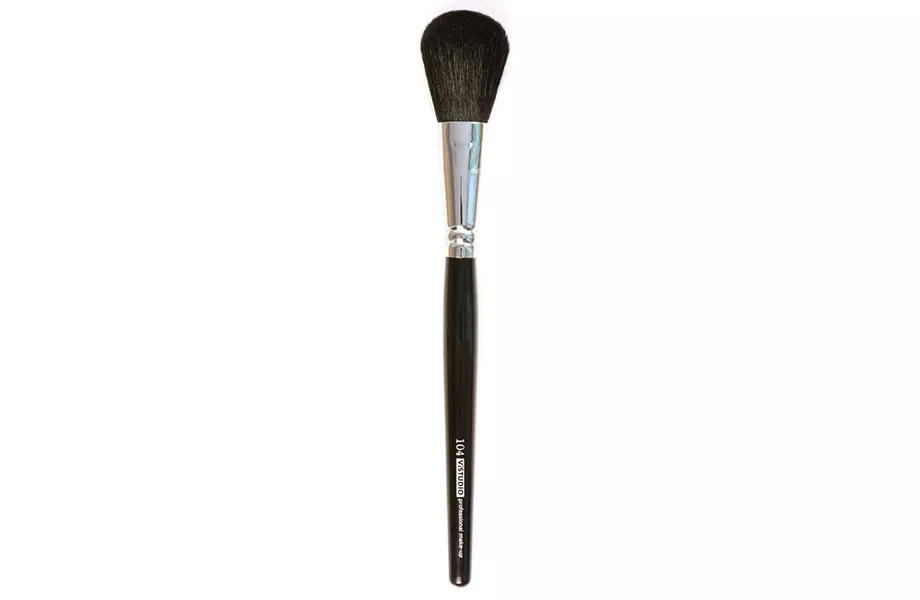 Имеет короткую ручку и пушистый конусообразный ворс. Такой вид бывает как с натуральным ворсом, так и с искусственным. Инструмент используют для нанесения рассыпчатой основы, а также для жидкого крема.