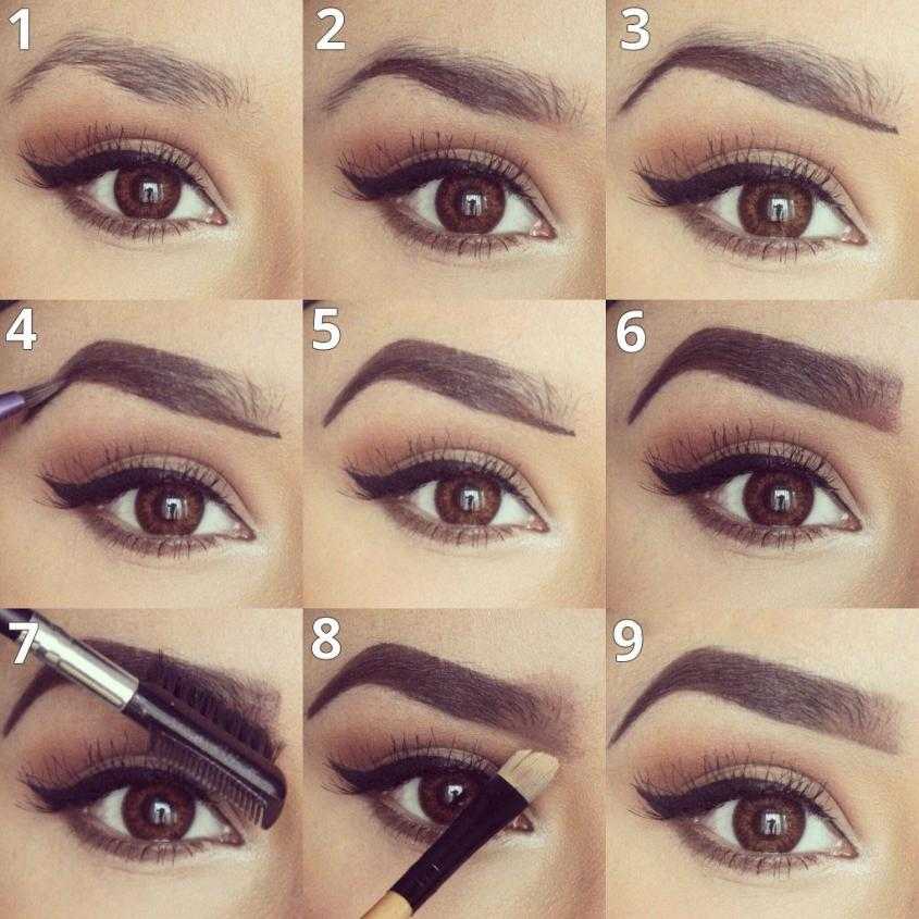 - Возьмите щетку для бровей и начните с нижней части брови. Работайте вверх, делая короткие и прямые мазки кистью.