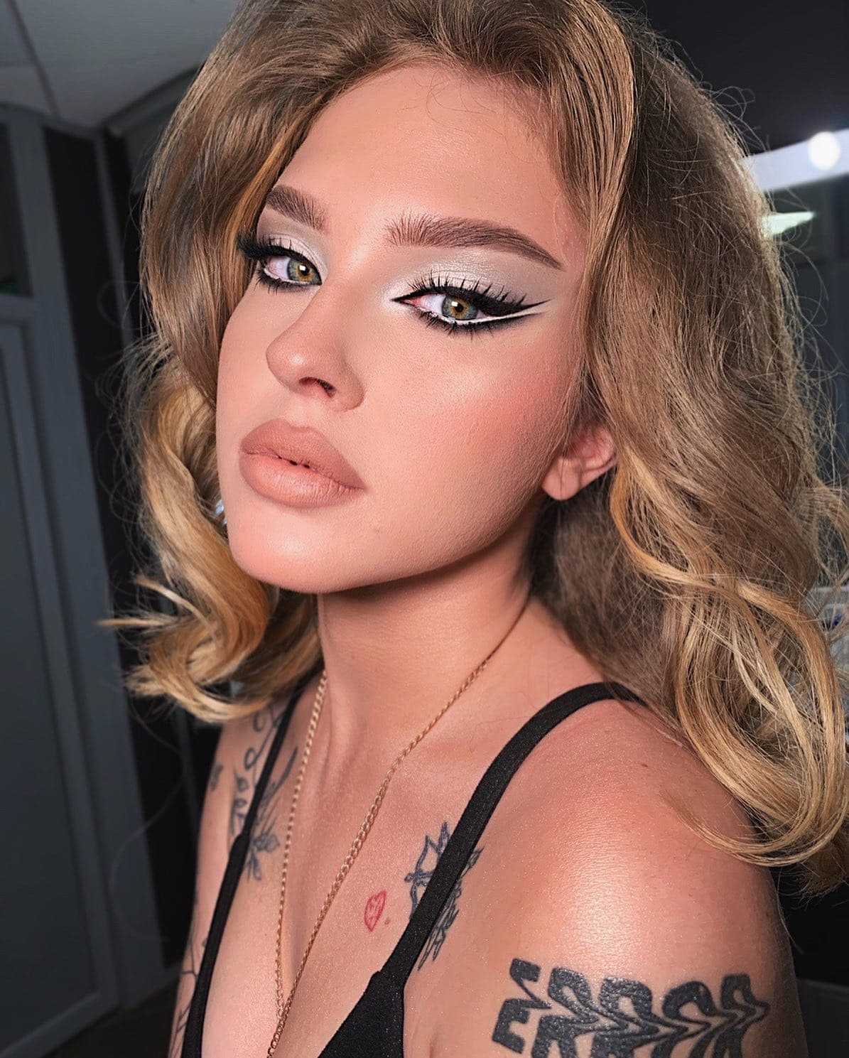 Как мы уже и говорили ранее, что 2022 год богат на стрелки. Весной 2022 будет модным рисовать на веках нестандартные стрелки. Они могут иметь любую форму, направление и даже цвет. Белым карандашом можно подчеркнуть нижнее веко, а верхнее выделить в стандартном черном оттенке.