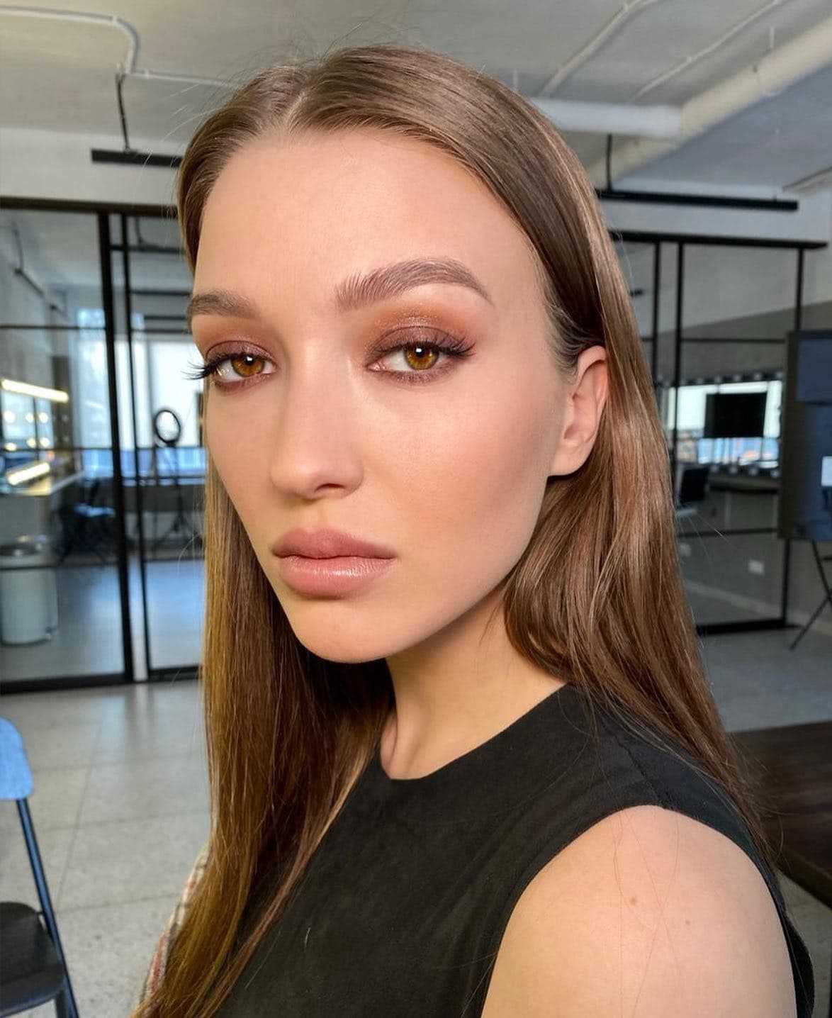 Этот вариант мейкапа поможет сделать образ невероятно нежным, теплым и свежим. Он станет идеальным вариантом для тех девушек, которые предпочитают спокойные, ничем не выделяющиеся оттенки.