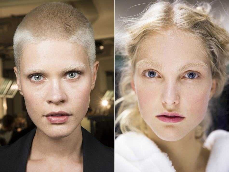 Но модных дизайнеров это не останавливает, и они из показа в показ доказывают людям, что белые брови — это стильно! Но самый «сок» — это обесцвеченные брови, зачесанные наверх, слегка поднятые.