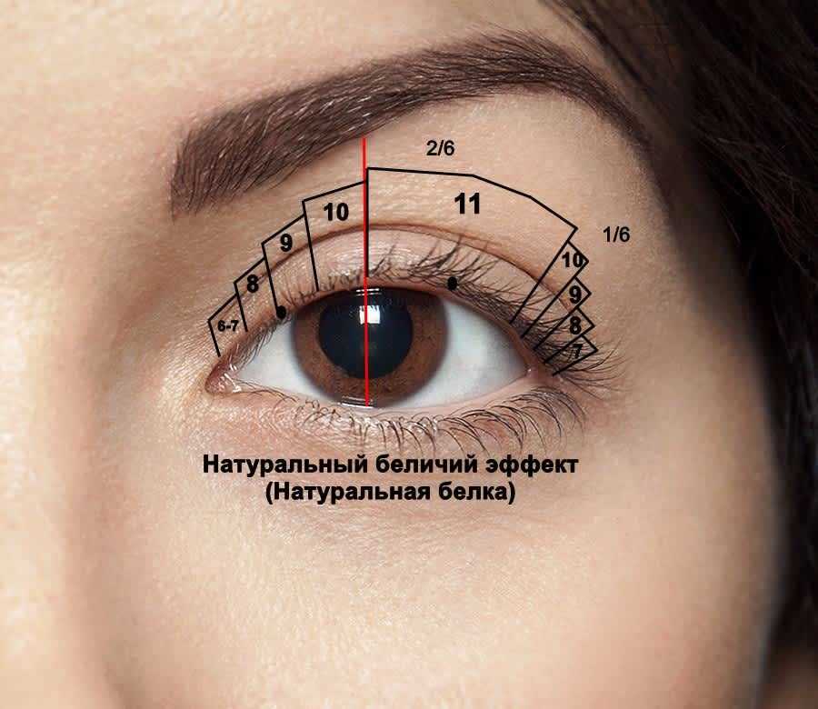 Для задавания правильного направления ресницам приклеивать их нужно, соблюдая определенную схему.